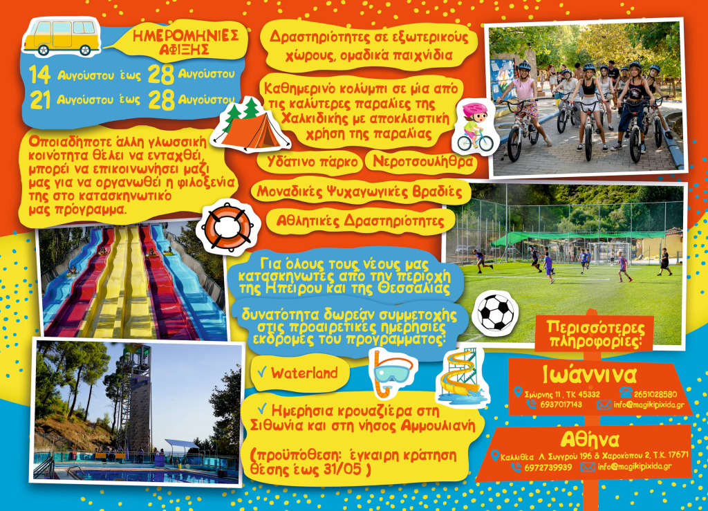 🌏 Οποιαδήποτε άλλη γλωσσική κοινότητα θέλει να ενταχθεί μπορεί να επικοινωνήσει μαζί μας για να οργανωθεί η φιλοξενία της στο κατασκηνωτικό μας πρόγραμμα.
